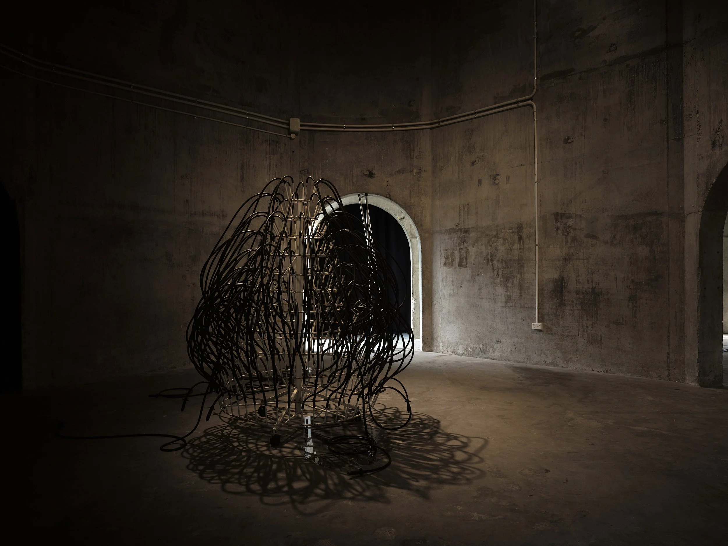Cool Whip, found objects, rubber tube, stainless steel, 2018/2022